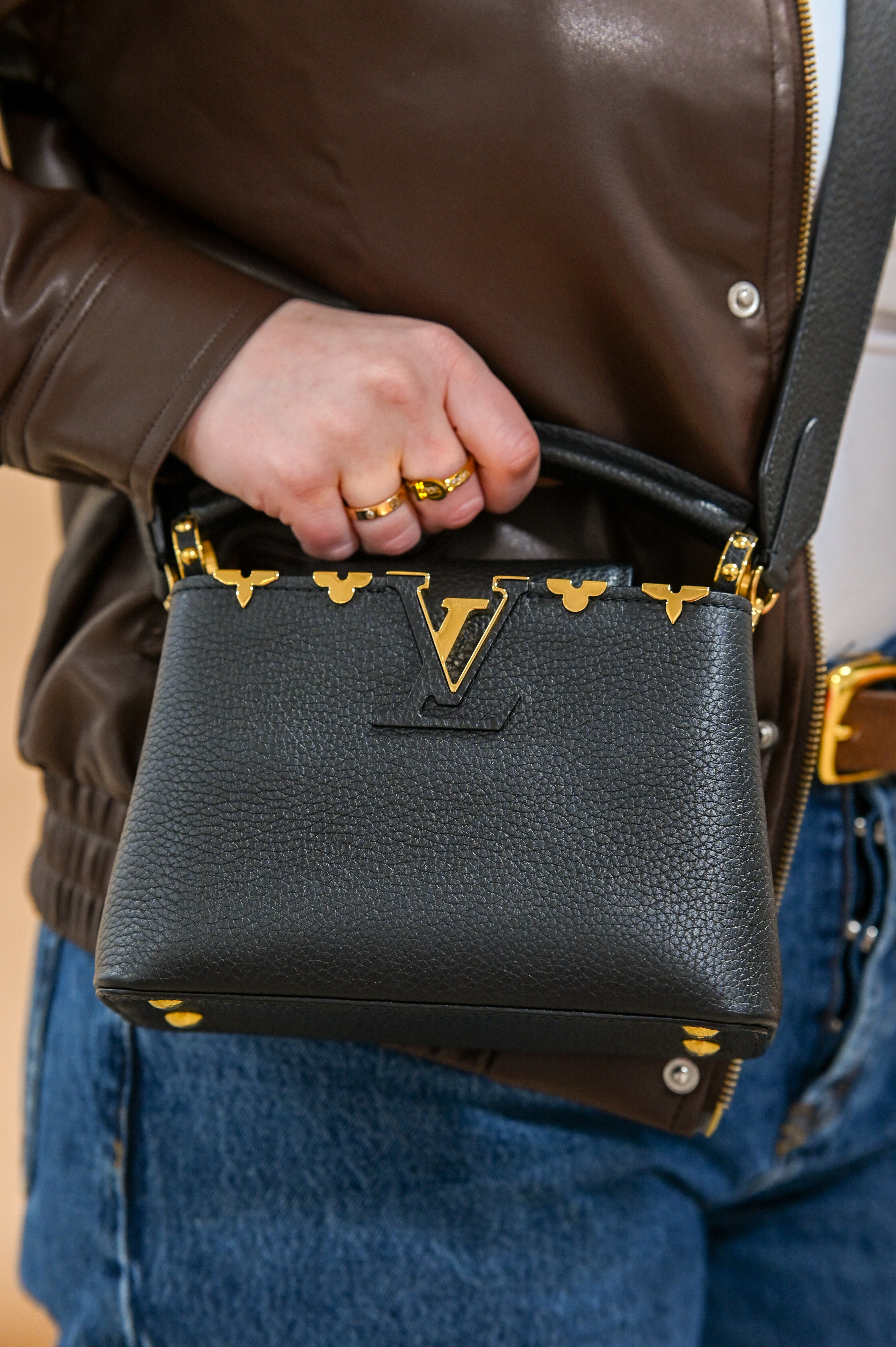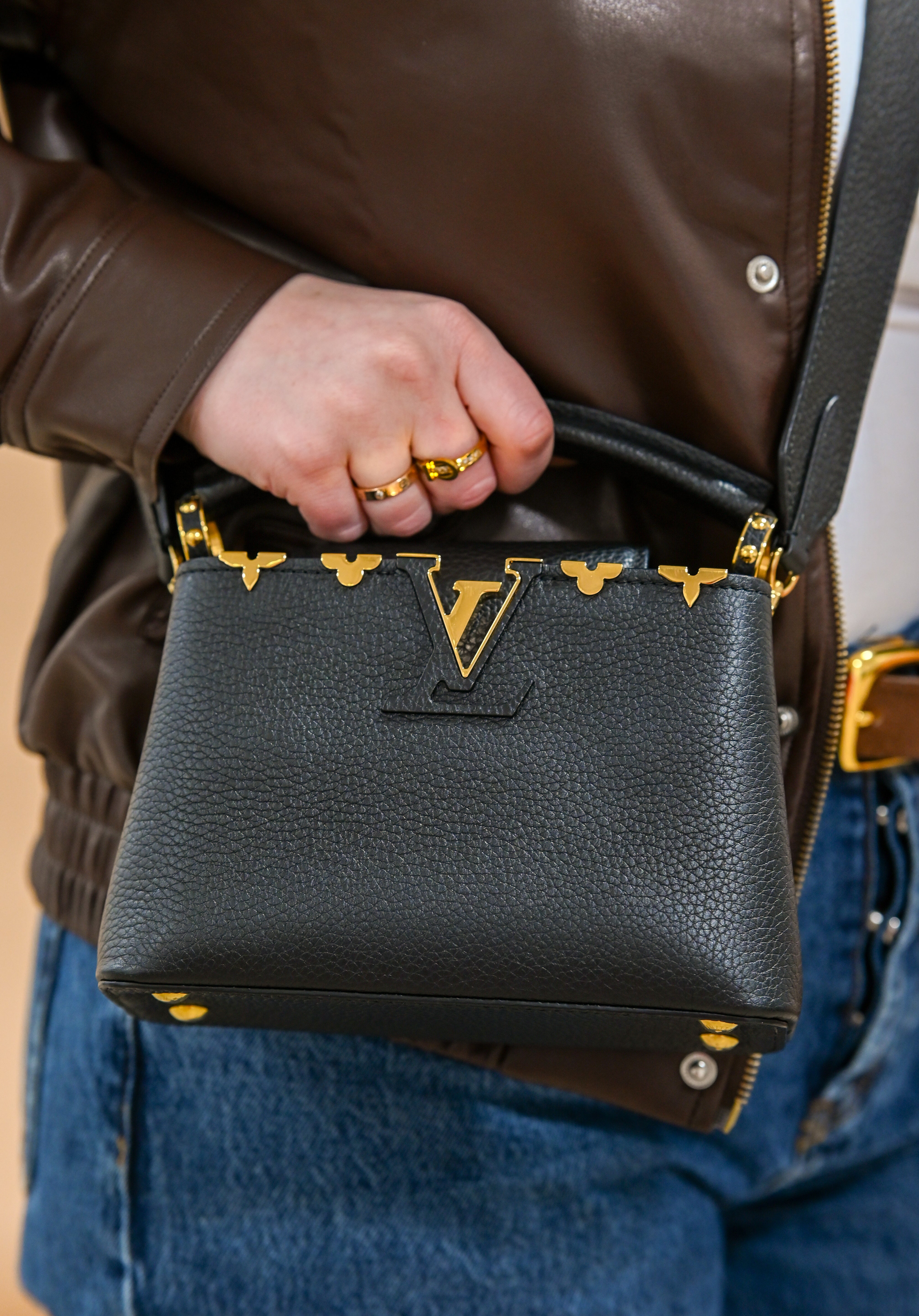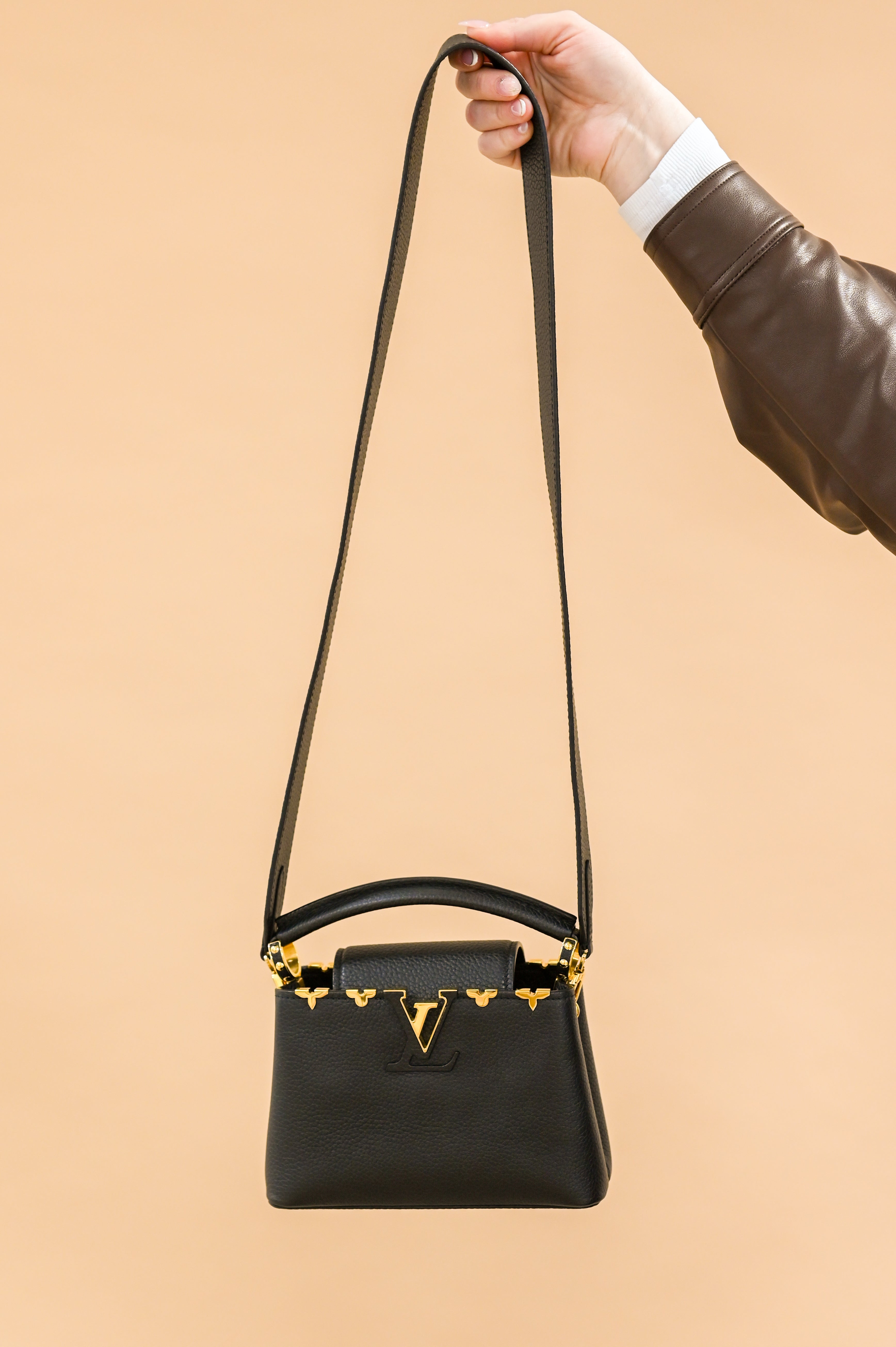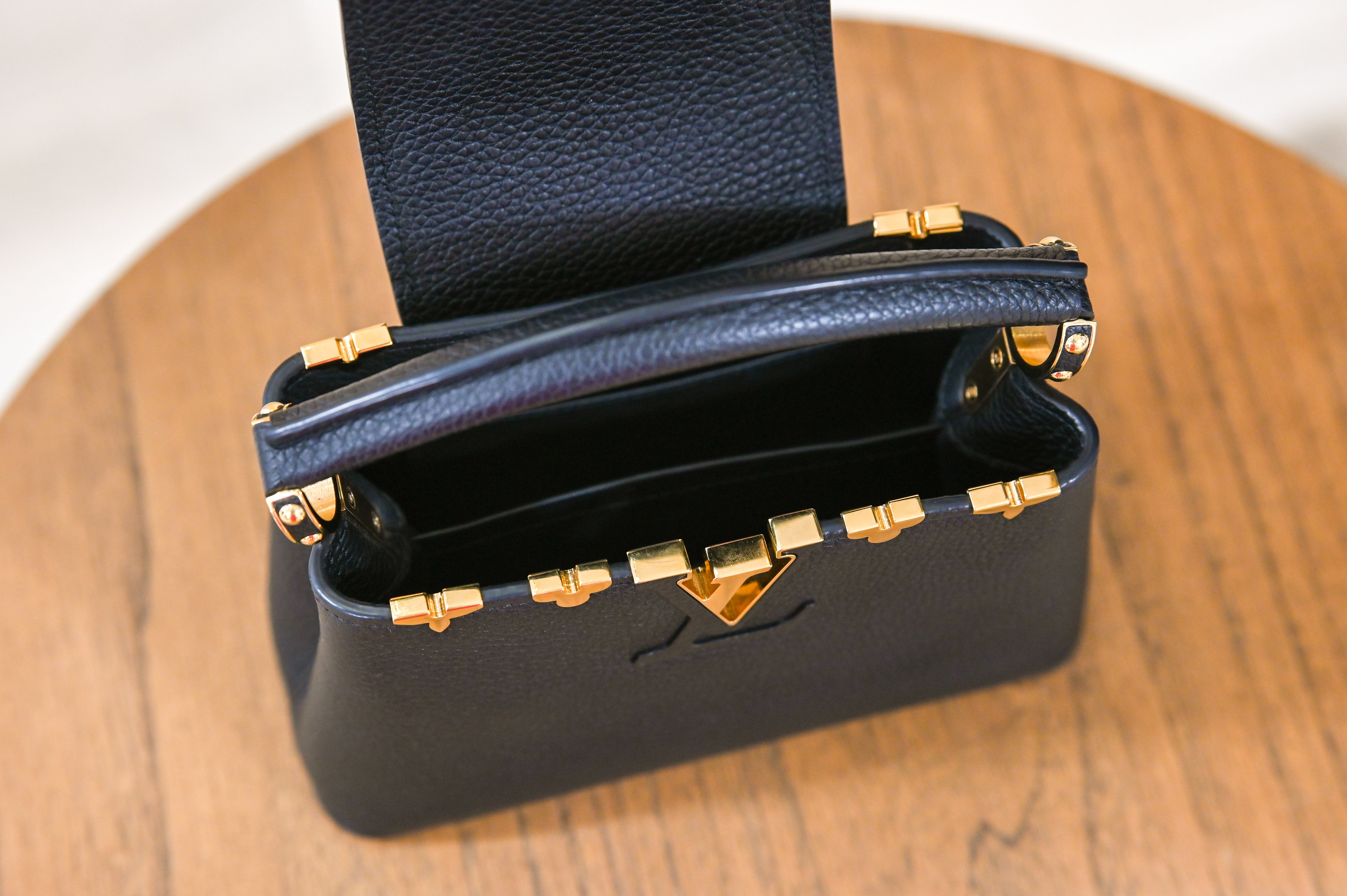 Louis Vuitton Mini Capucines Black Top Handle and Crossbody with Gold Details