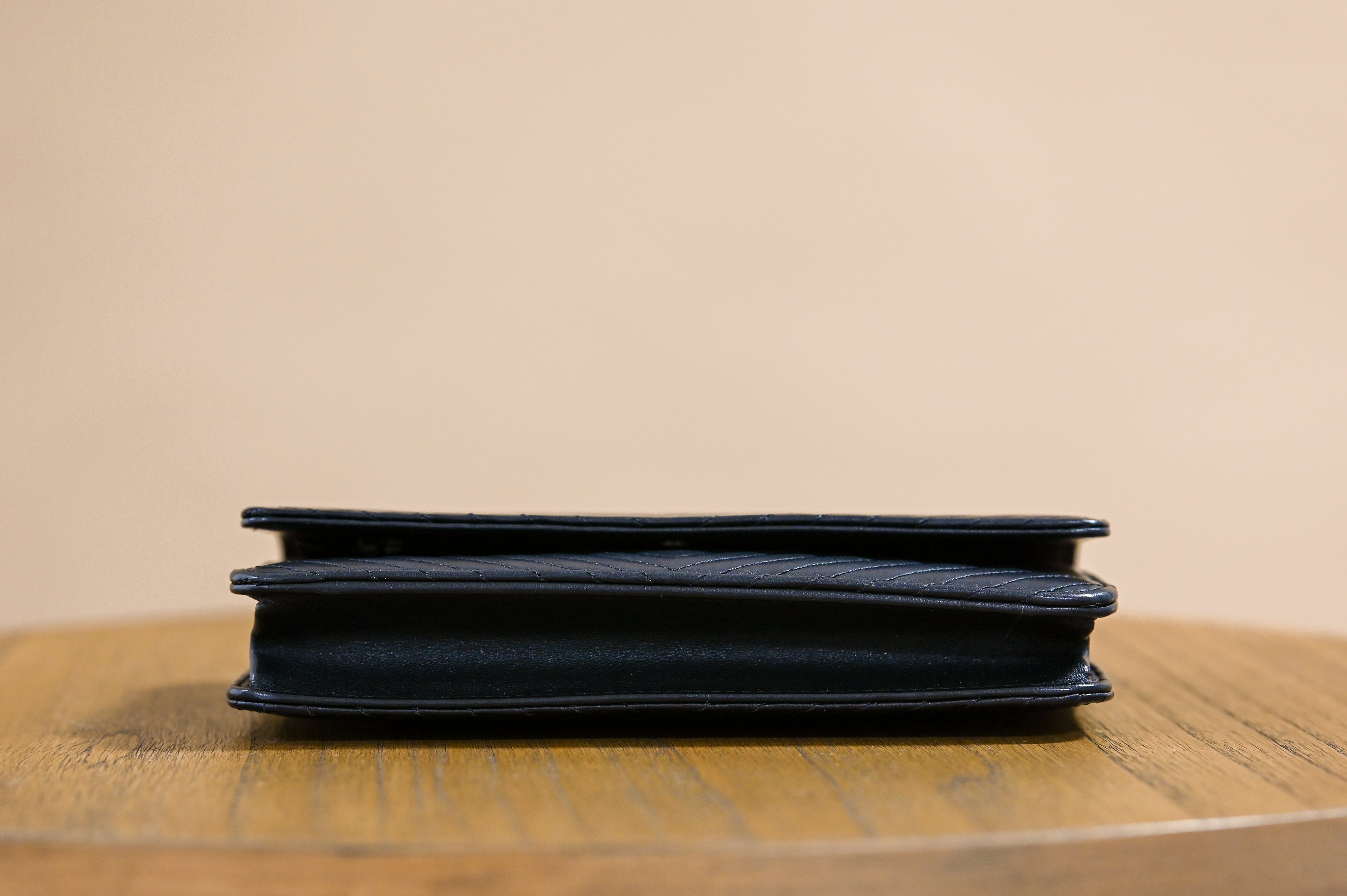 A modern Chanel icon, the So Black Wallet on Chain embodies understated luxury and long-term collectability. Crafted from supple chevron-quilted lambskin, this coveted piece is finished with Chanel’s signature all-black hardware, creating a sleek, monochromatic look that remains timeless and in demand.