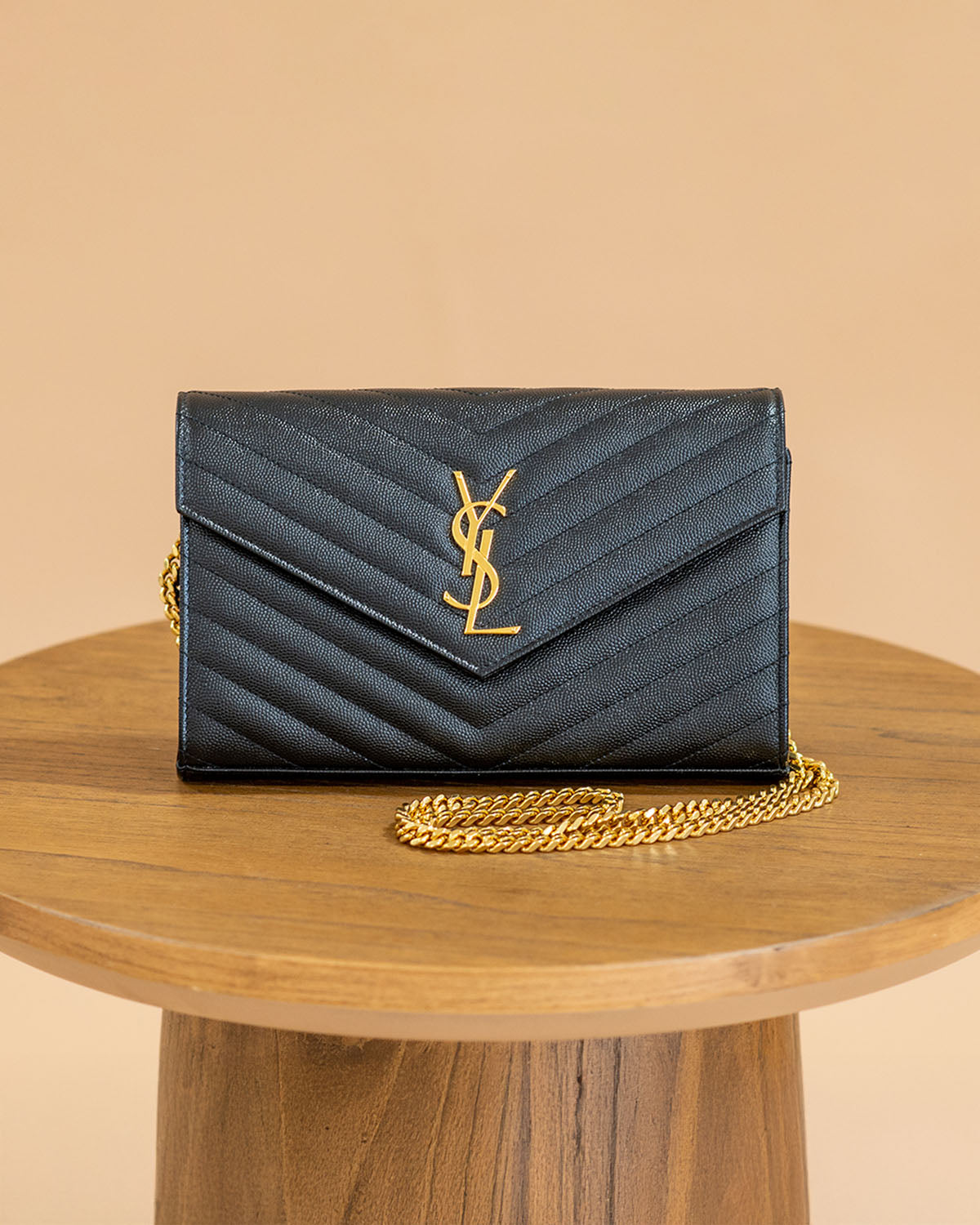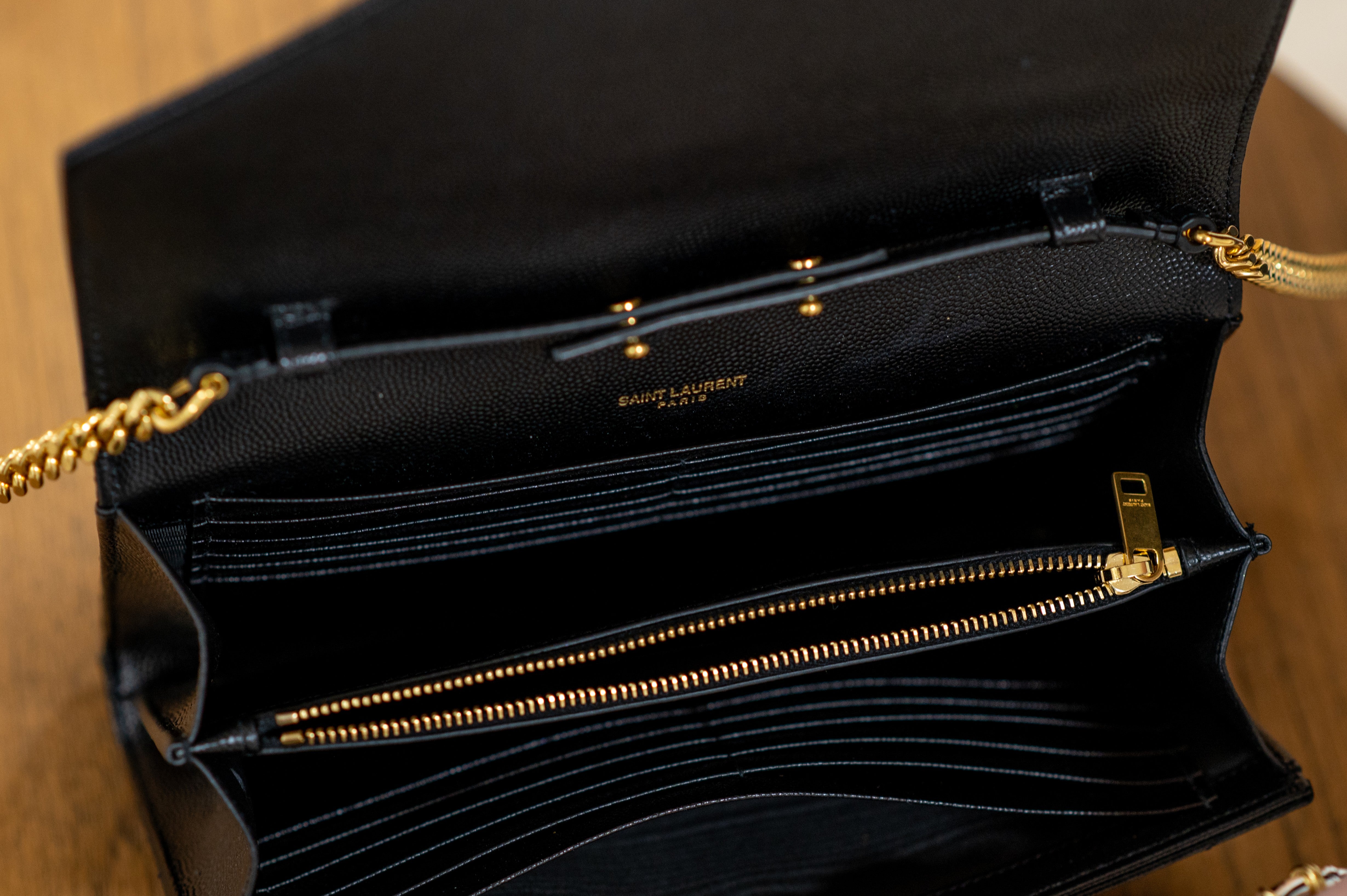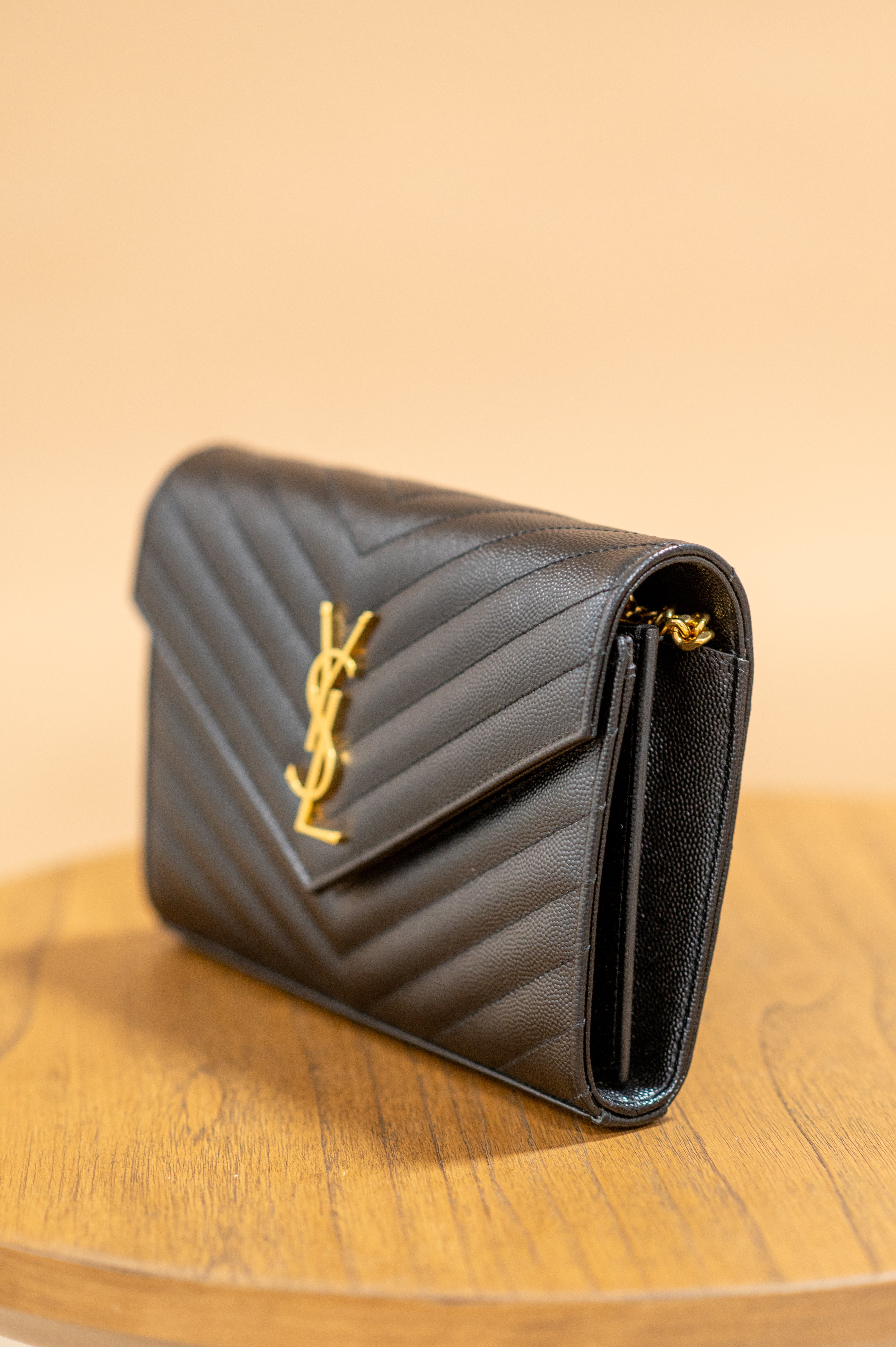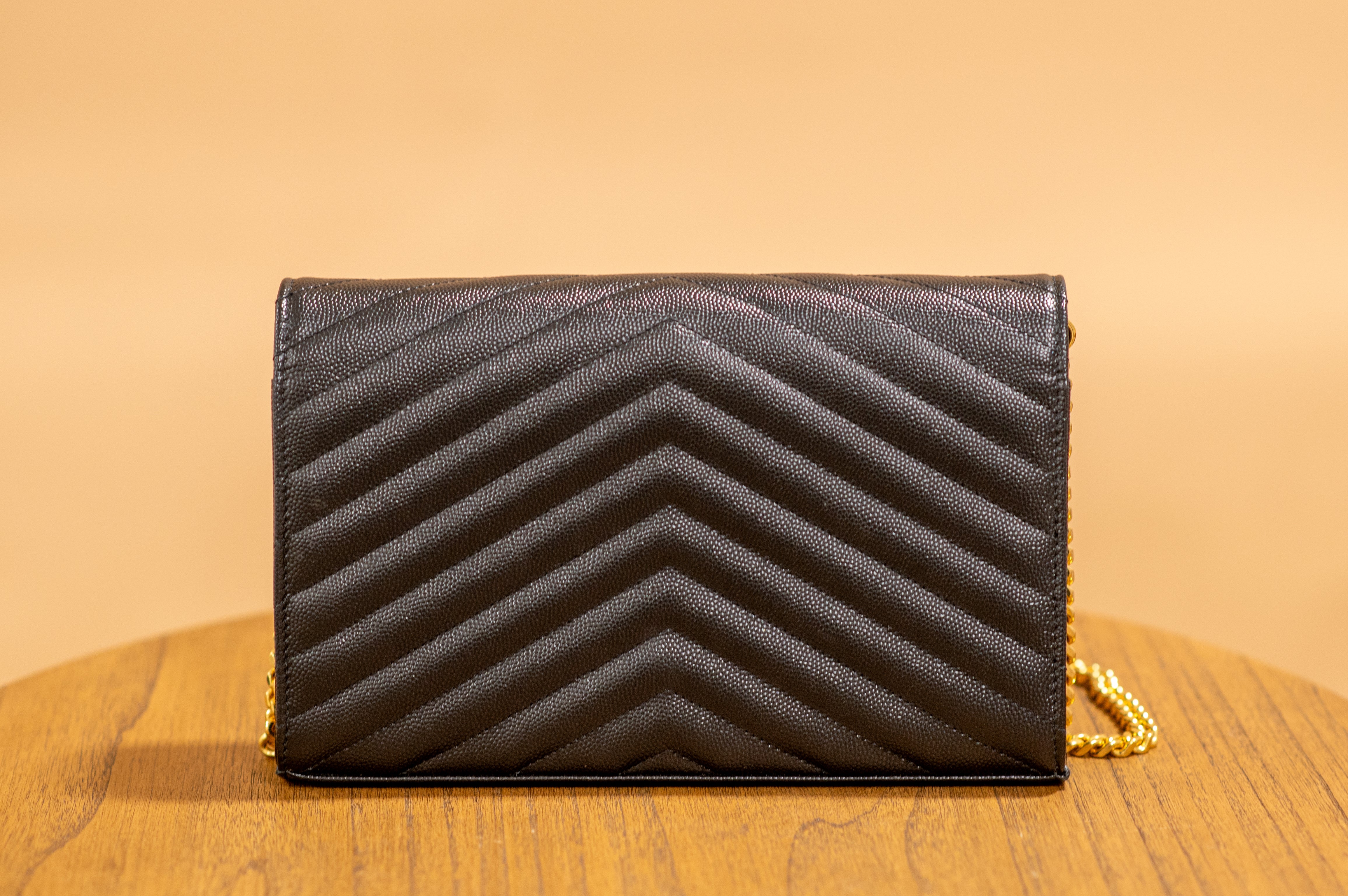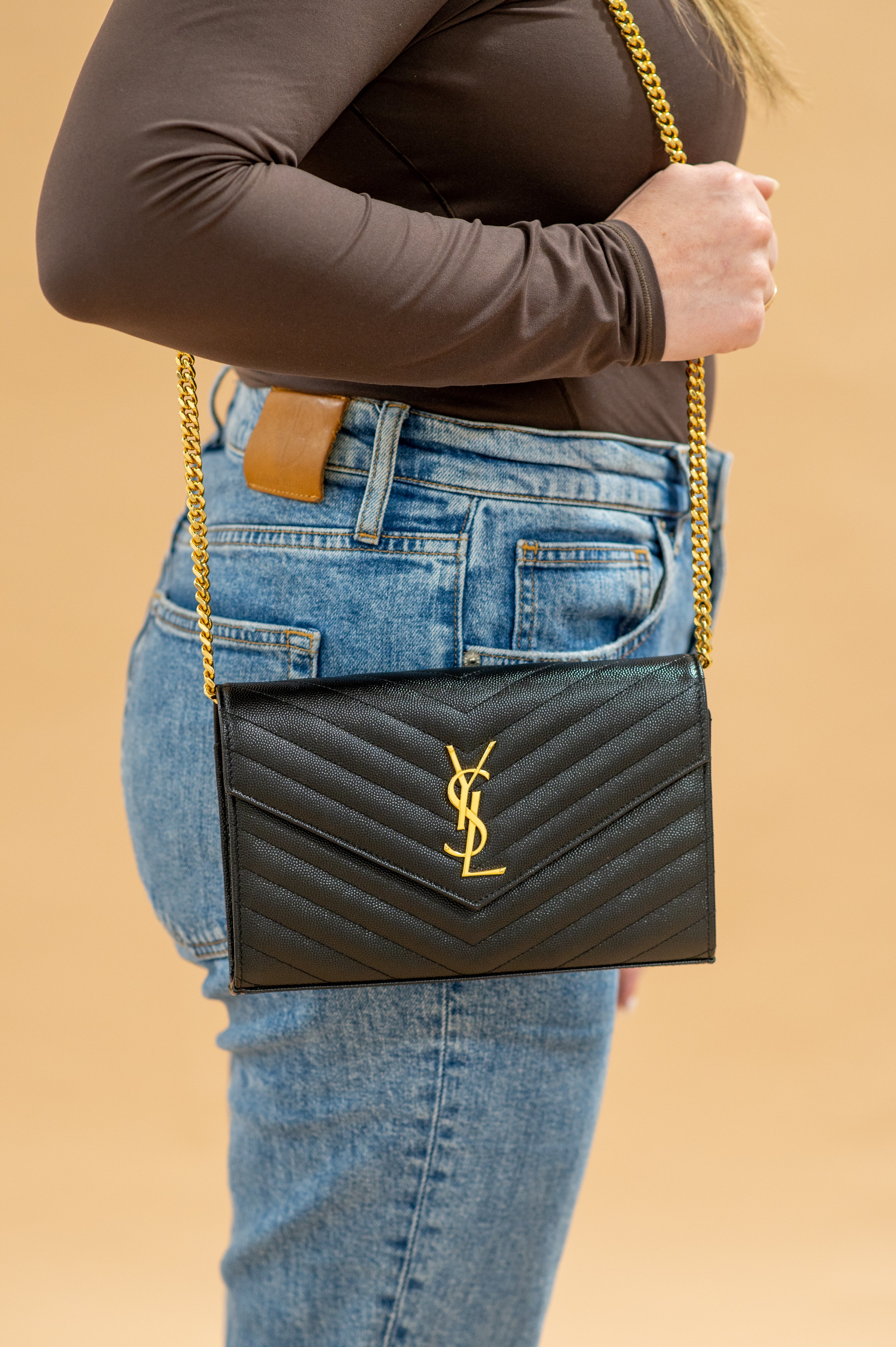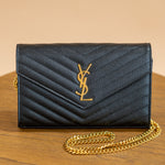 YSL Black Classic Cassandre Chain Wallet in Grain de Poudre Leather