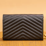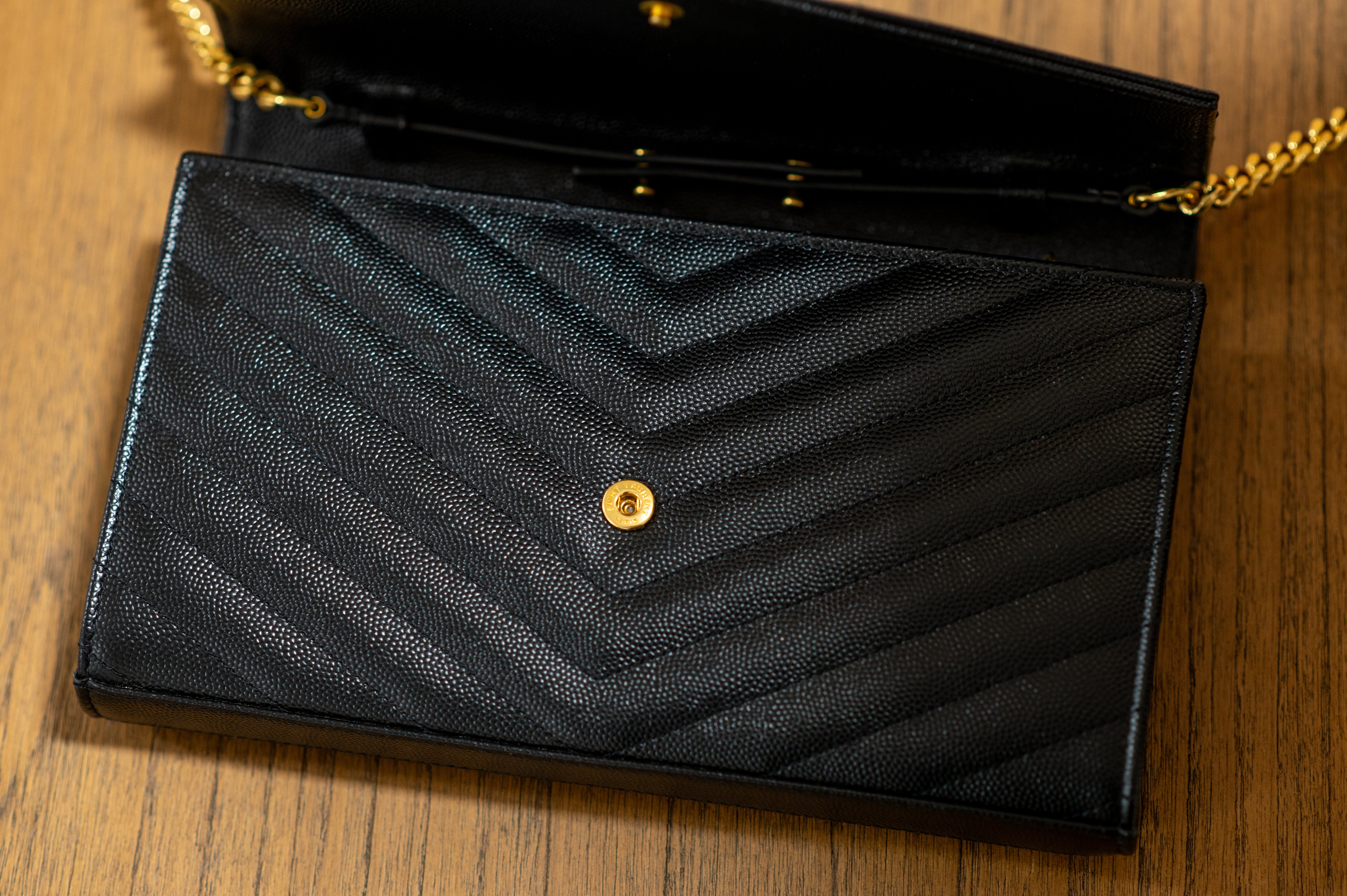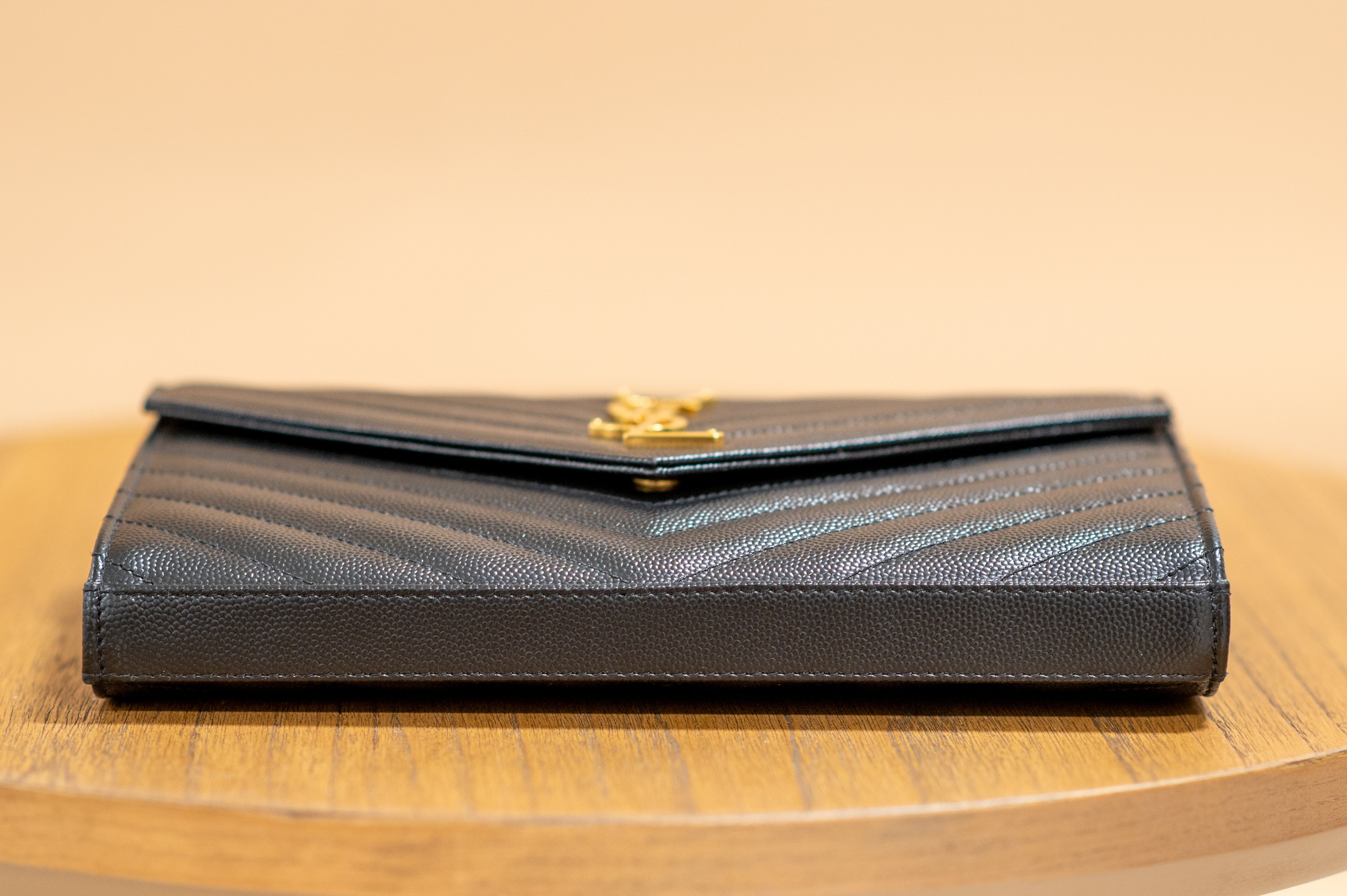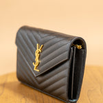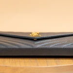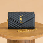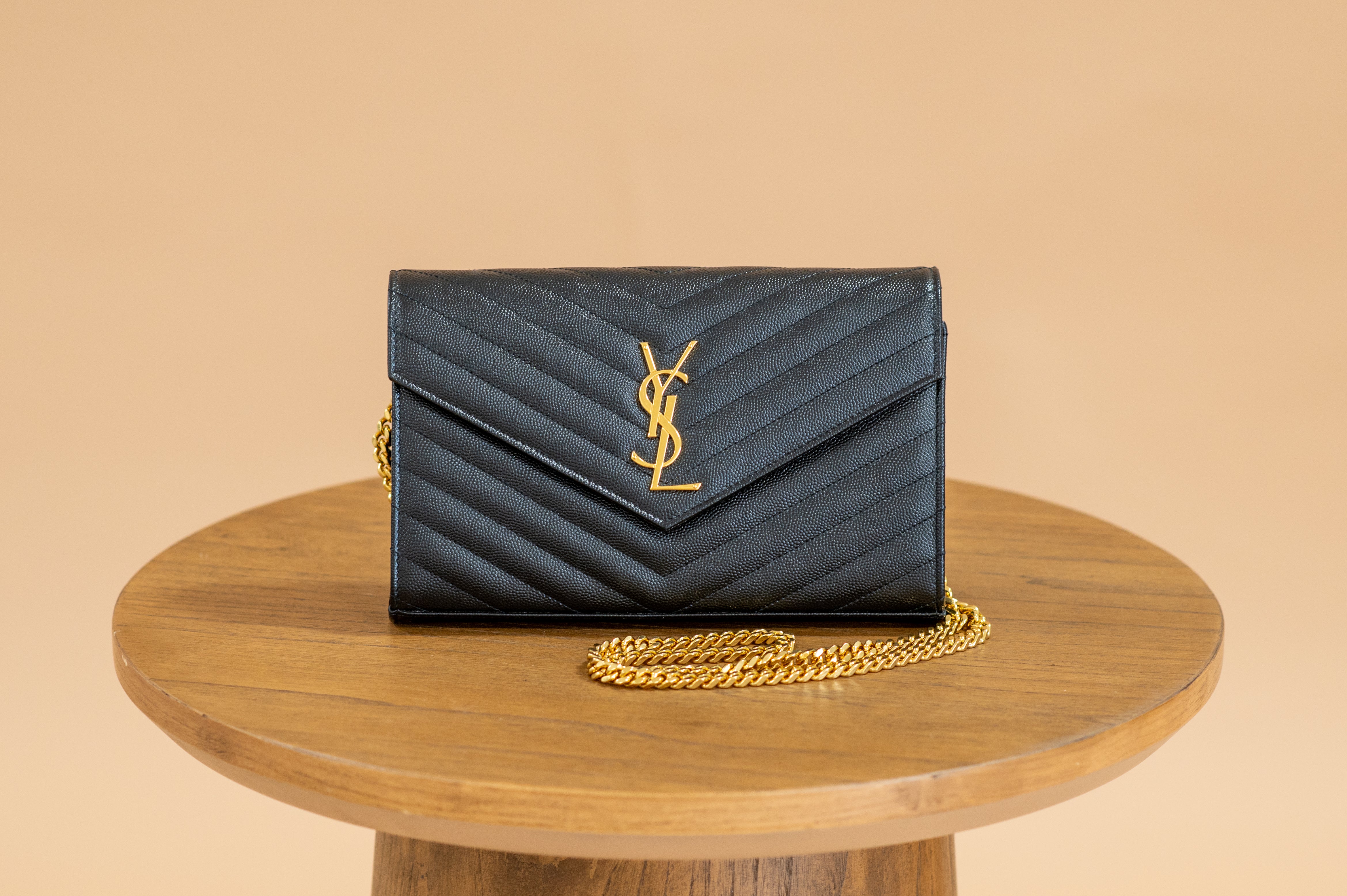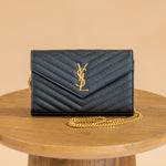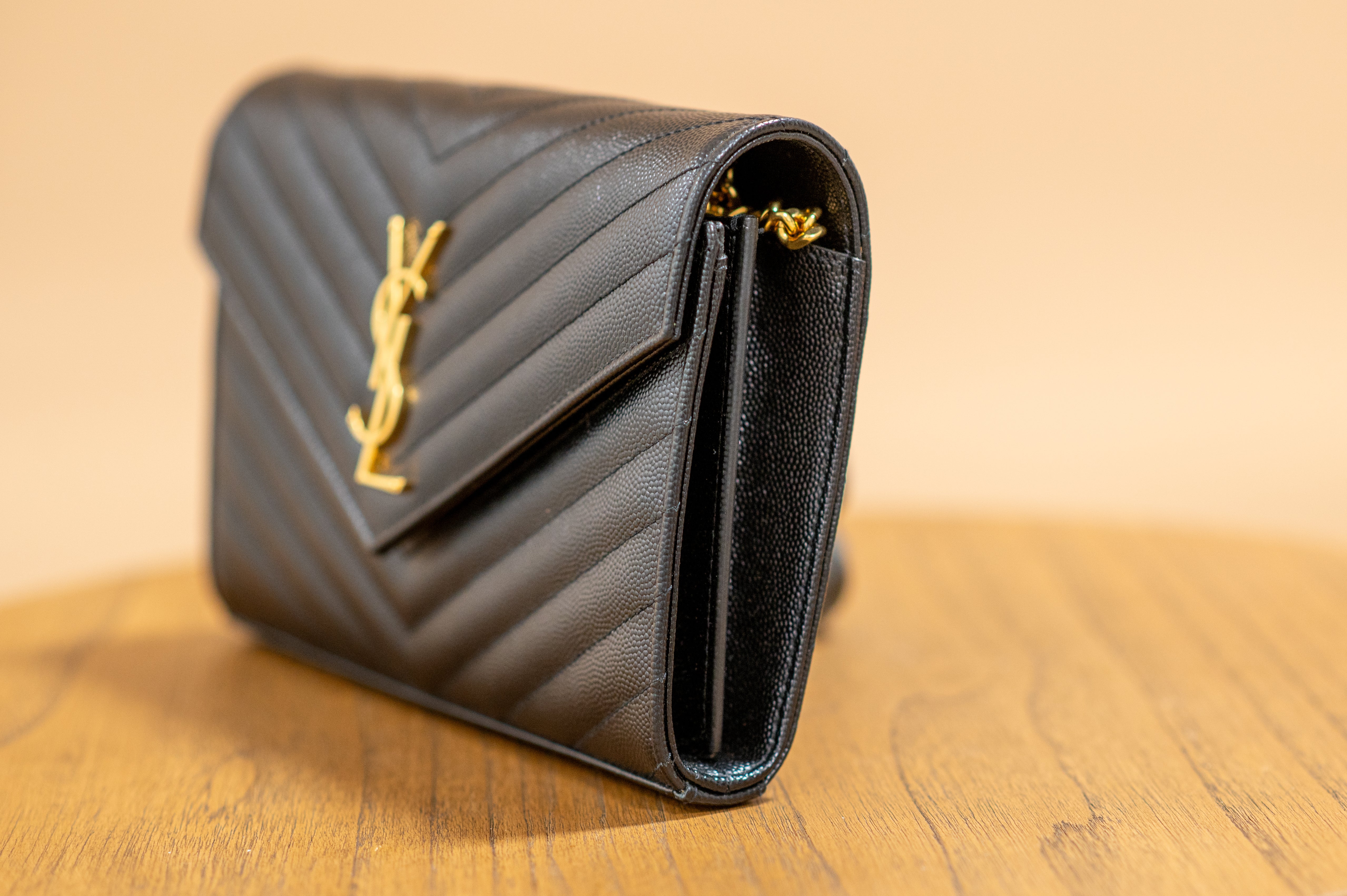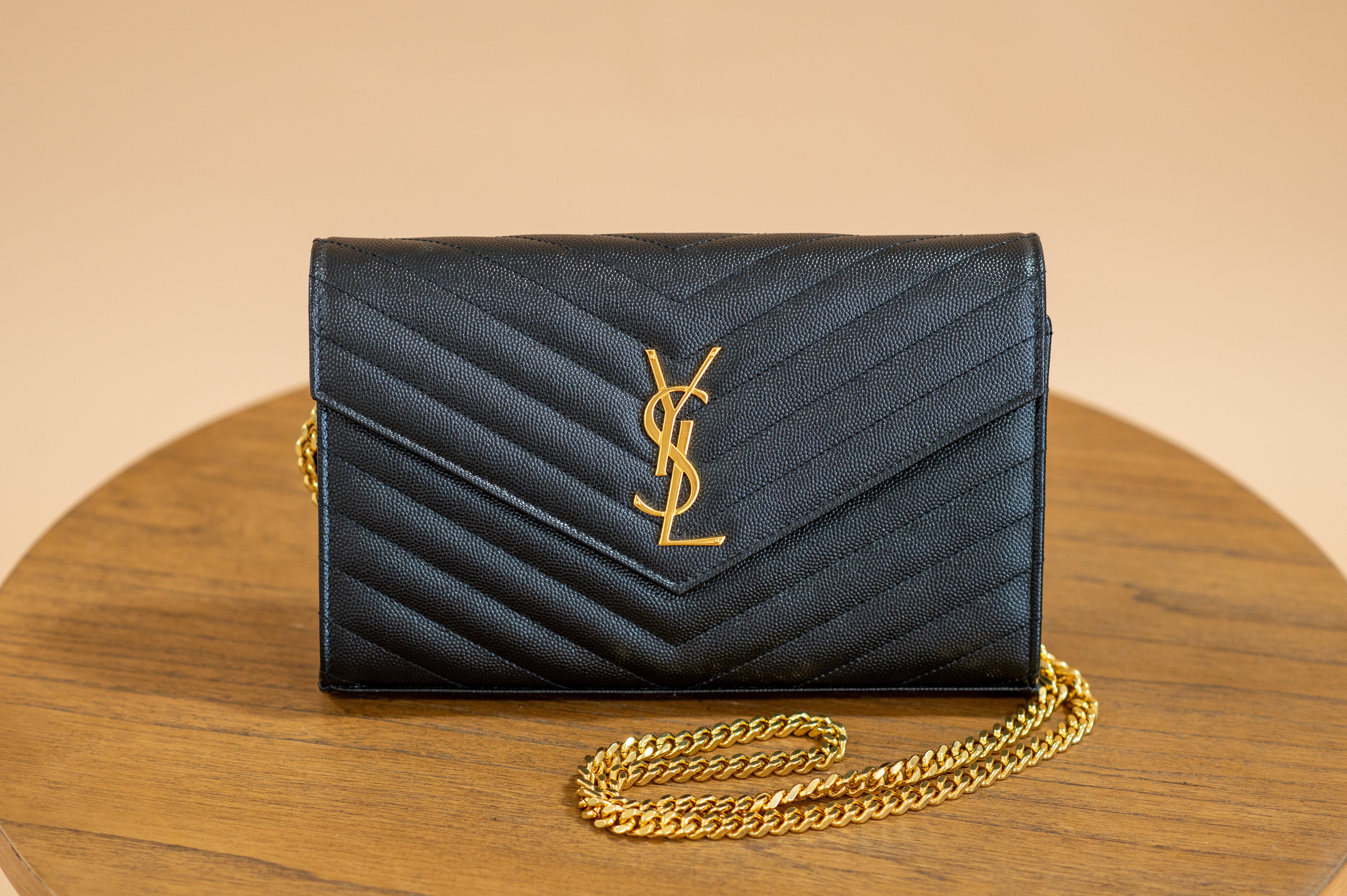 YSL Black Classic Cassandre Chain Wallet in Grain de Poudre Leather