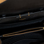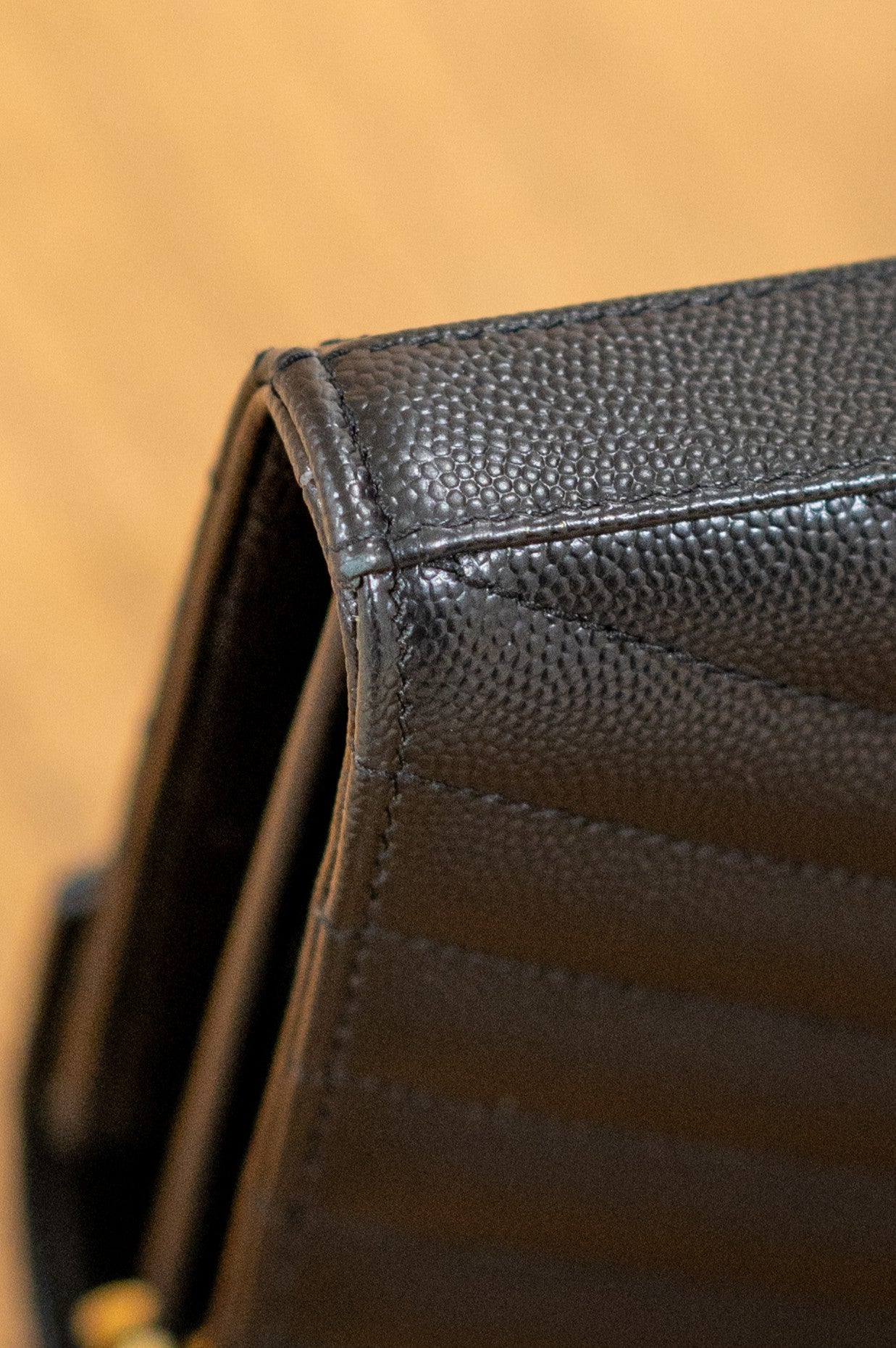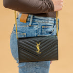 A Beecham Bags best-seller, this bag is a showstopper. This purse stands out with its dazzling Cassandre YSL emblem detail and chevron quilting. The bag offers the best of both worlds, it can be worn as a crossbody, shoulder bag, or as a clutch. It is the most stunning and practical option with multiple pockets and card slots to hold all of your night-out essentials. This is the classic size from YSL, the larger of the two sizes offered.